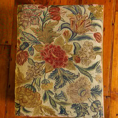 Each with a rectangular seat covered in colorful floral needlework (French 2nd quarter 18th century), on faceted legs with "mushroom" cappings, and elaborately carved and pierced scrolled stretchers, Decoration refreshed. English circa 1690