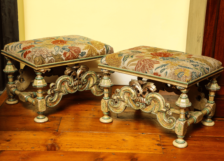 Pair William & Mary Japanned Benches
