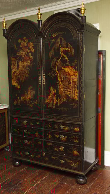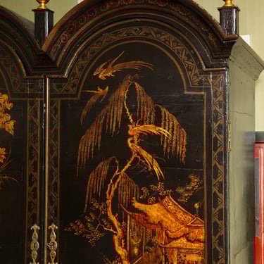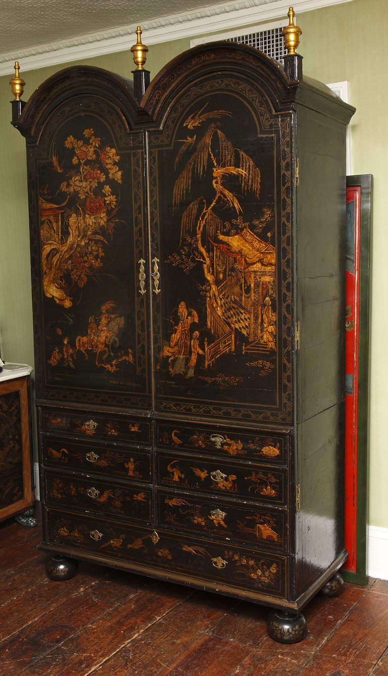 Rare Queen Anne Japanned Wardrobe Cabinet with original chinoiserie decoration