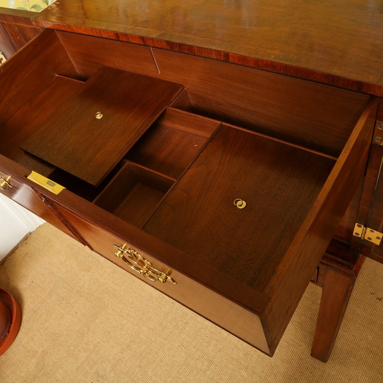 This piece features an intricate secret locking/unlocking mechanism with hidden keyhole, spring release and double locking mechanism. English