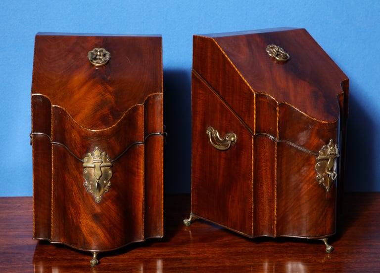 Pair George III Period Serpentine Mahogany Knife Boxes